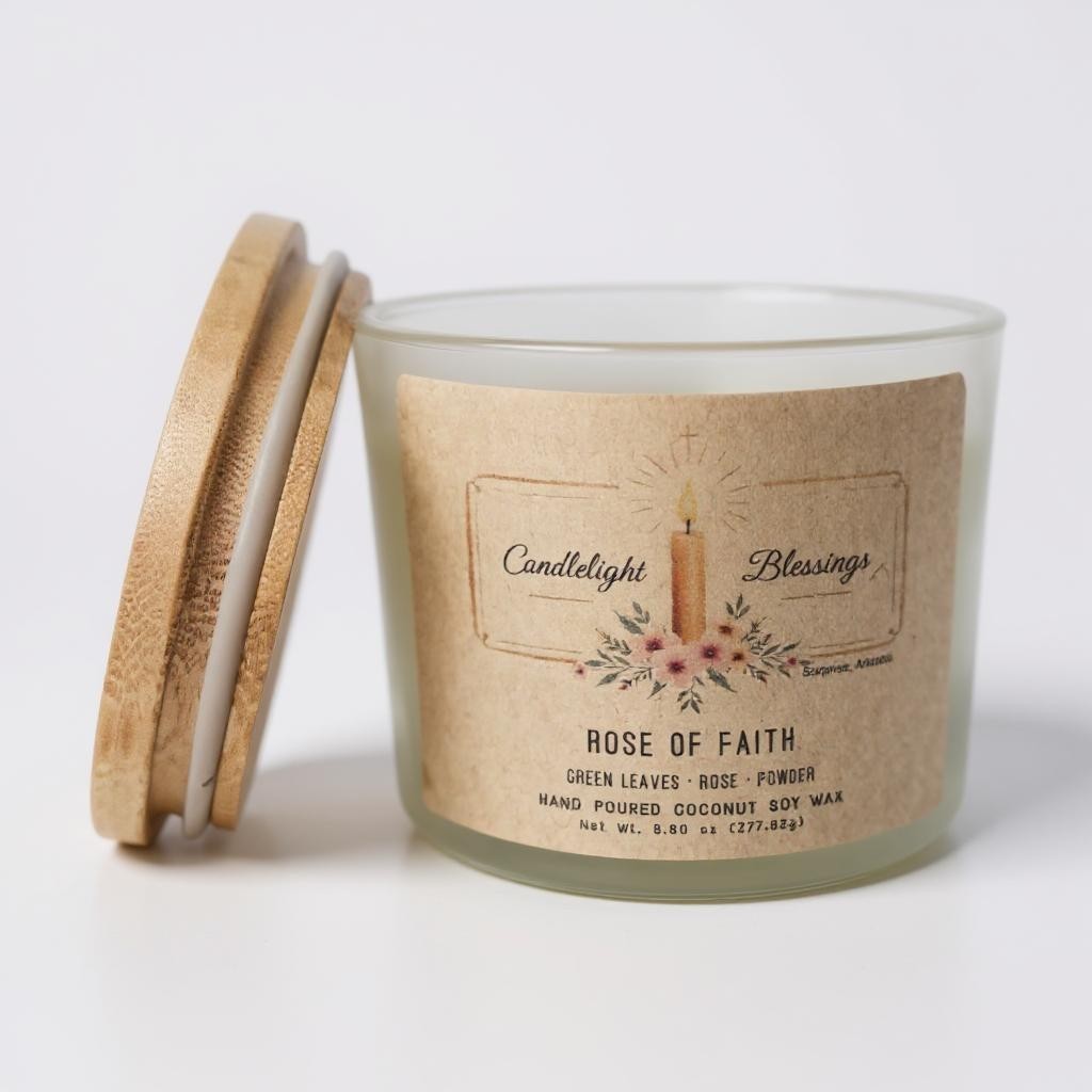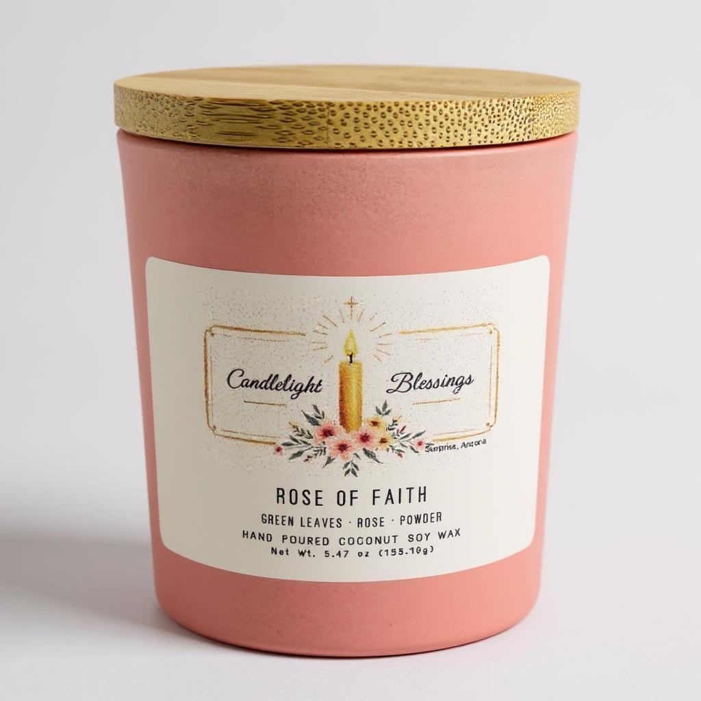 Hand-poured with love and prayers, this candle is made from natural coconut soy wax, ensuring a clean and long-lasting burn. Whether you're deep in prayer, meditating, or simply enjoying a quiet moment, our "Rose of Faith" candle is the perfect companion to uplift your spirit and fill your space with divine fragrance.